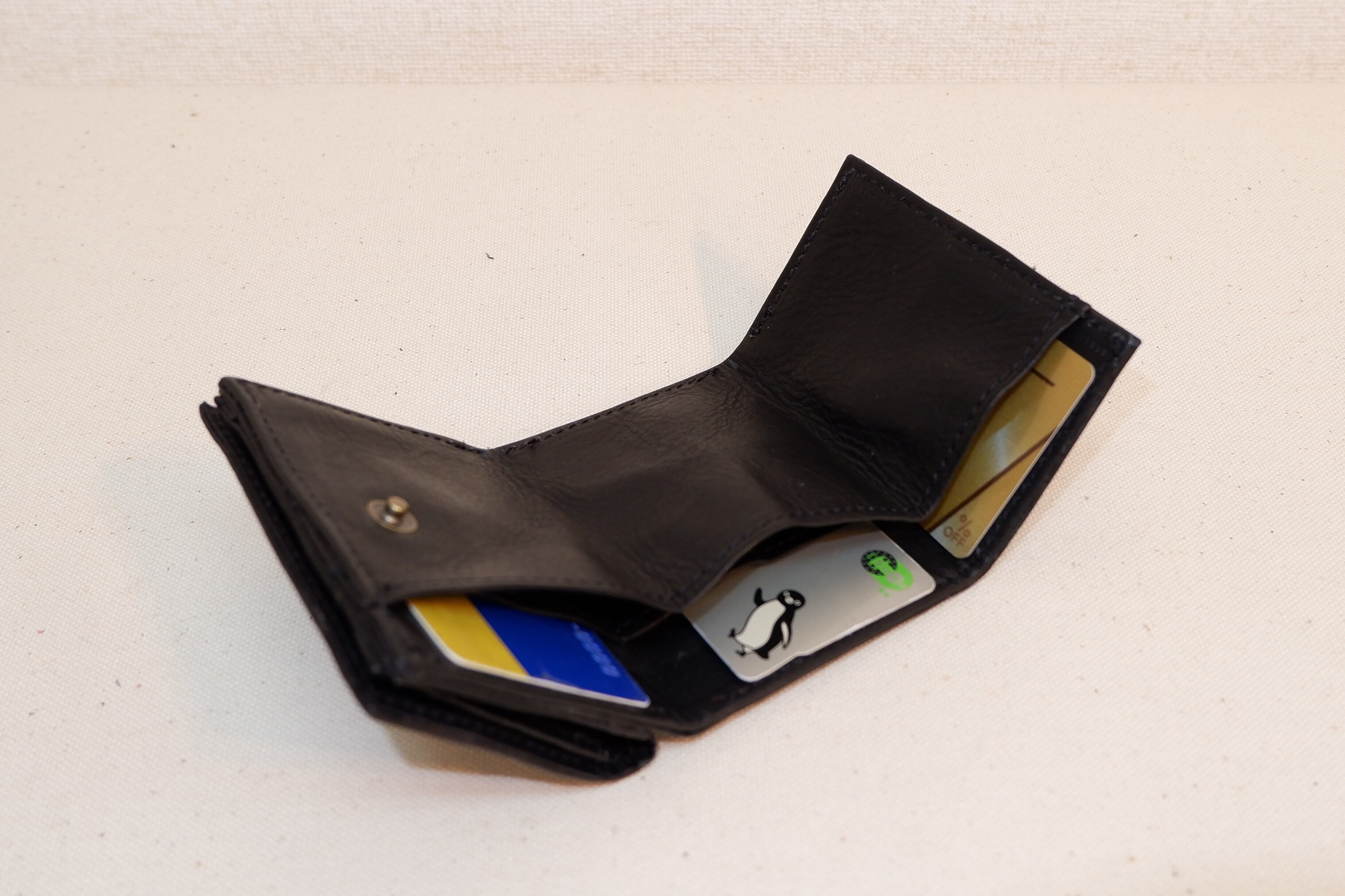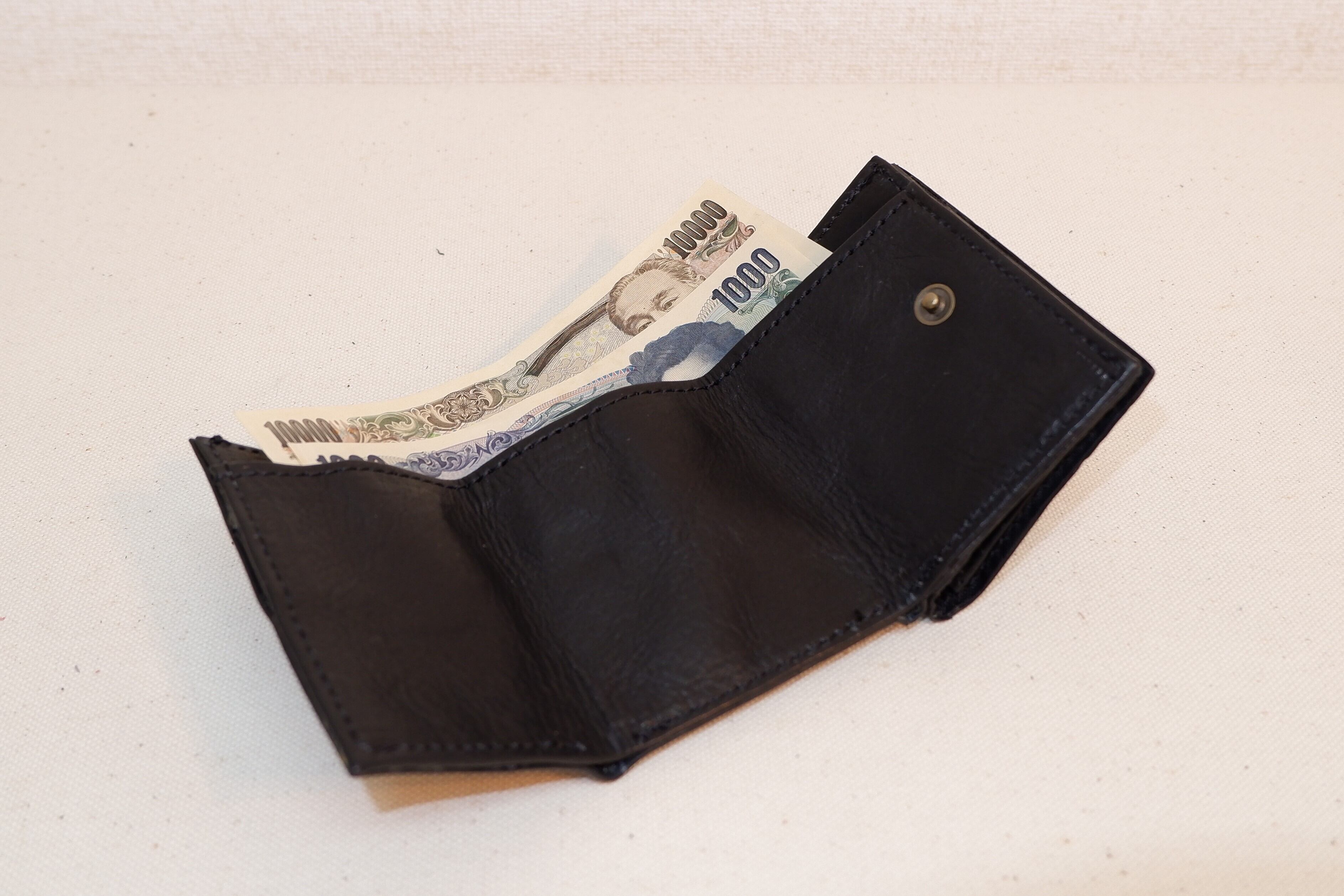 本牛革で作った収納力たっぷりの三つ折りサイフです。