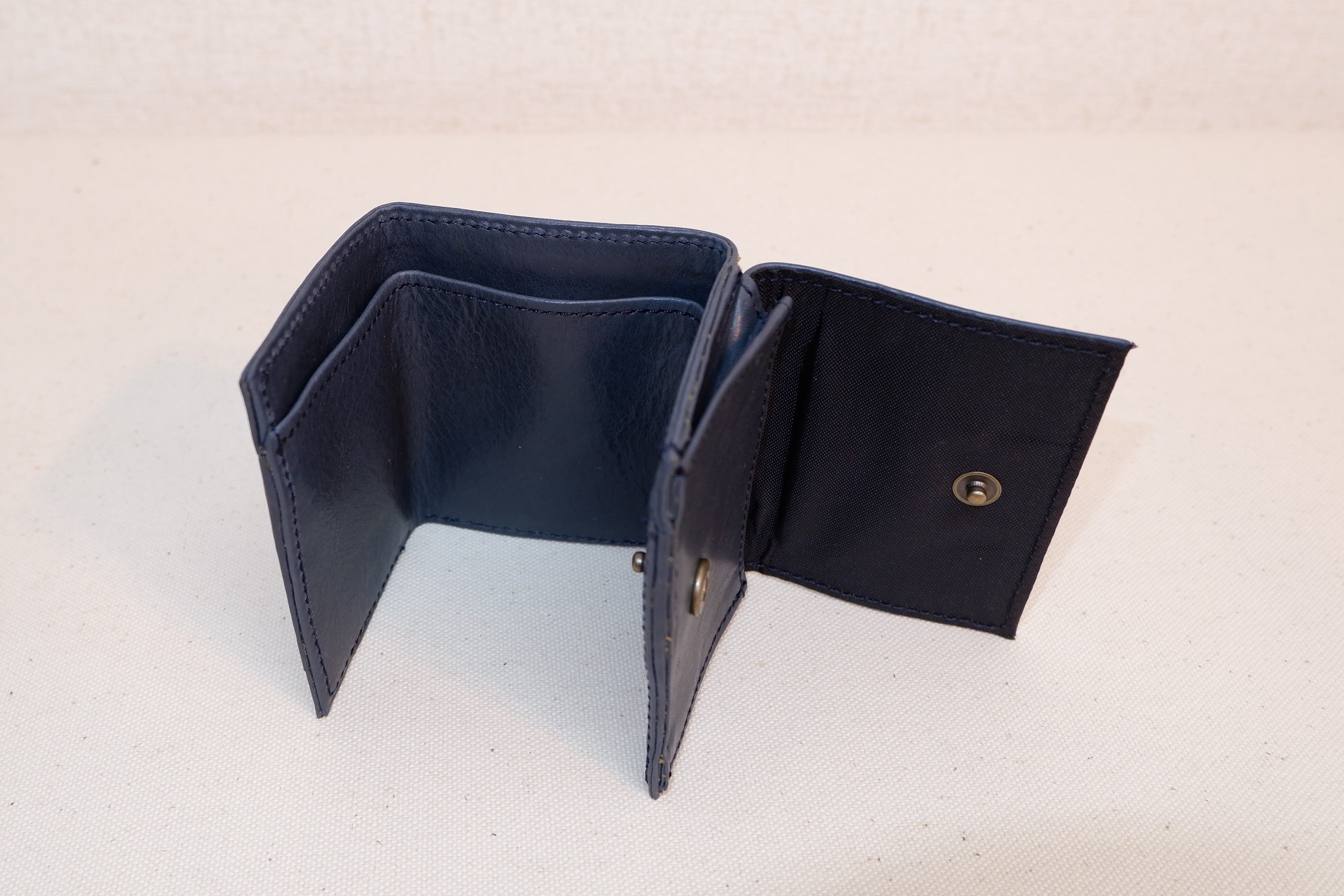 本牛革で作った収納力たっぷりの三つ折りサイフです。