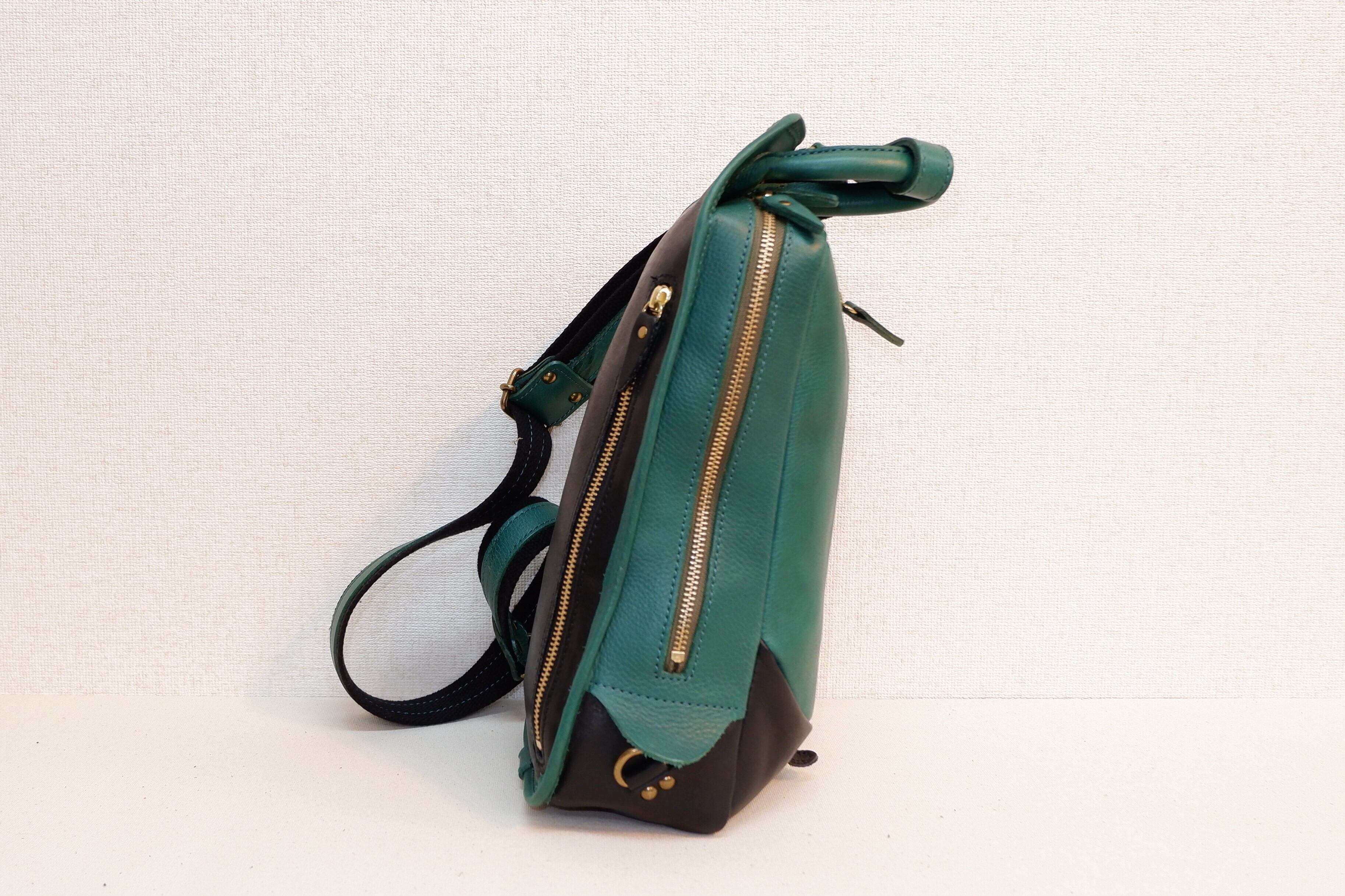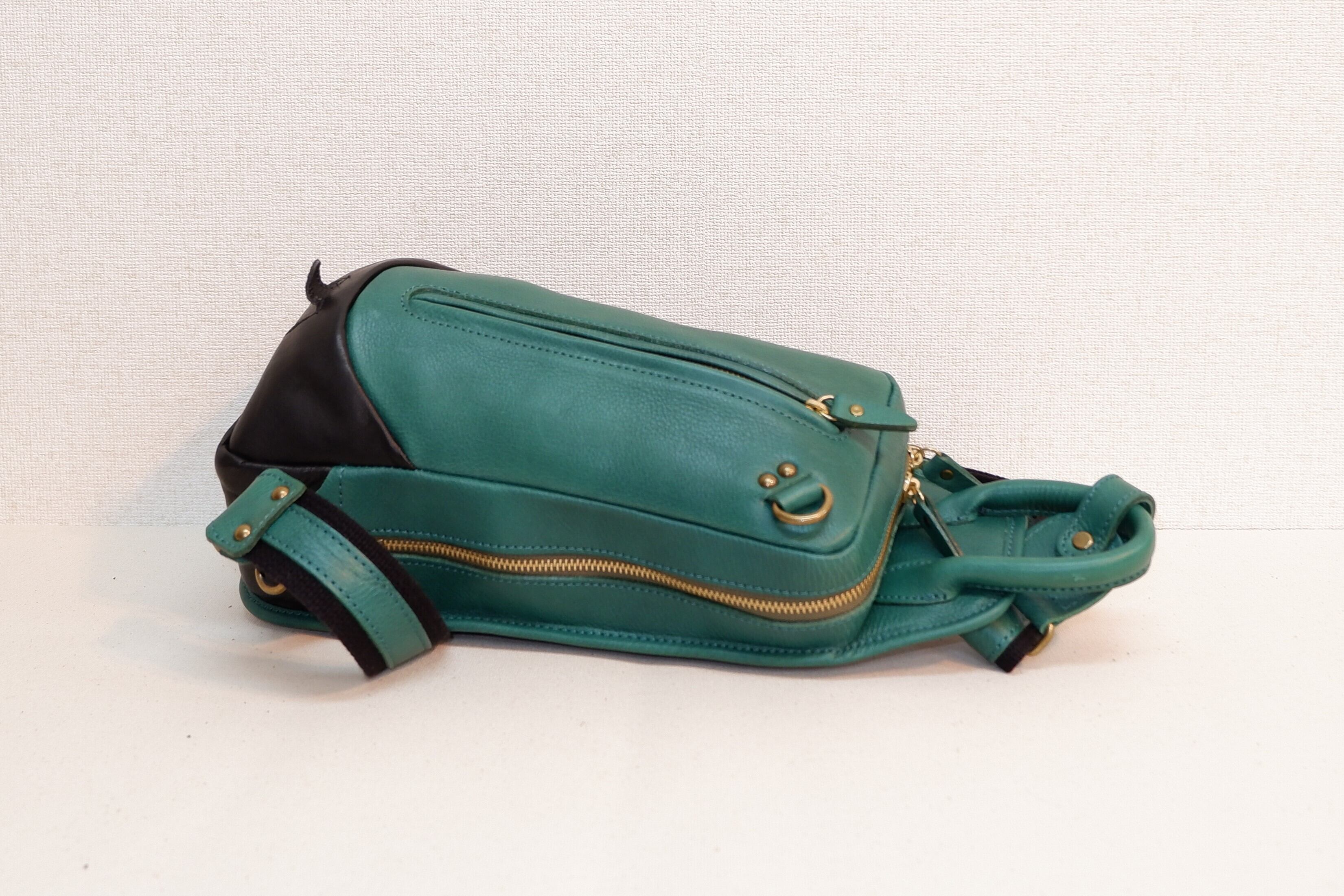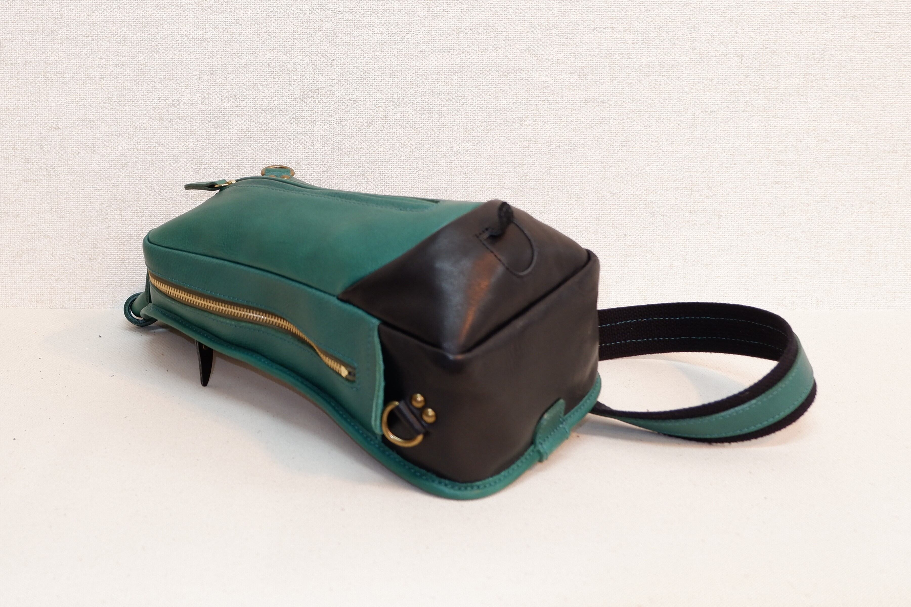 ビートルボディバッグ 本牛革 グリーン×ブラック