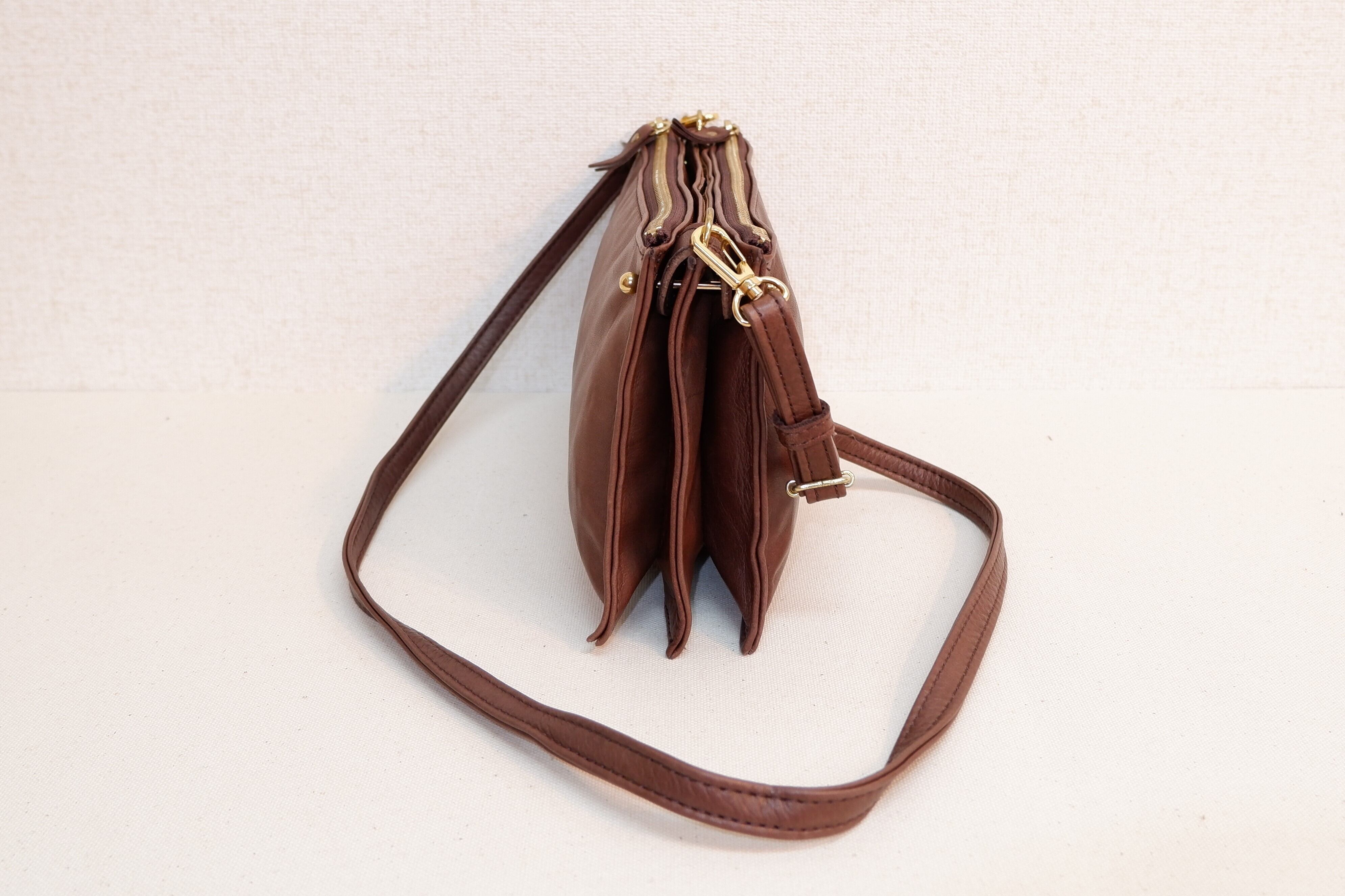 ミツドーショルダーバッグ 本牛革 ブラウン