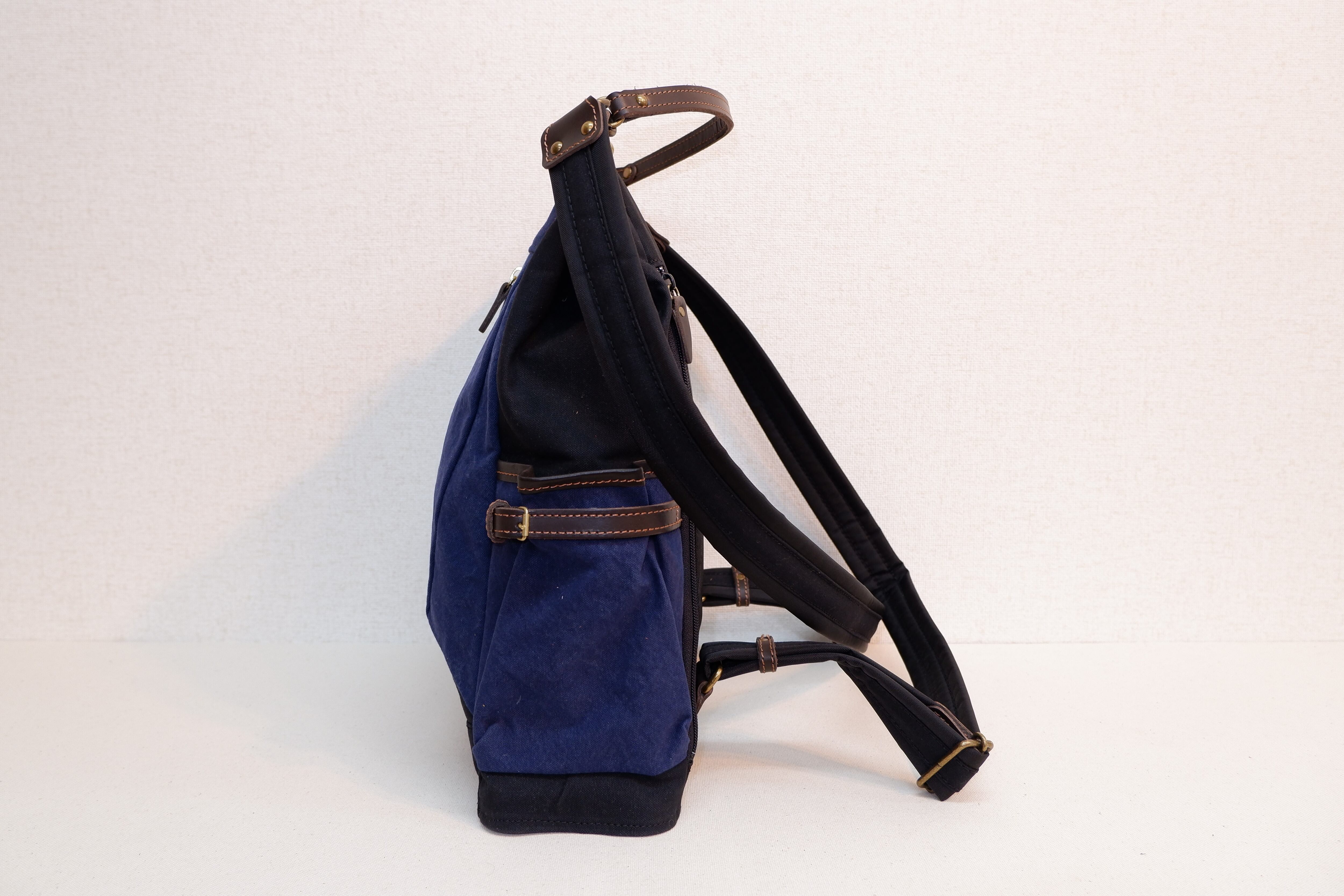 リュックの底を独自の縫製で作成したため直立したまま安定します。