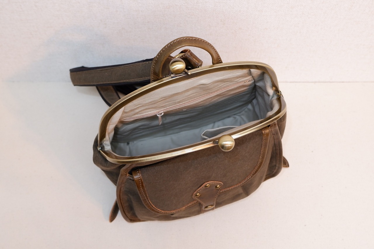 素材はパラフィンバイオ加工帆布と本牛革です。