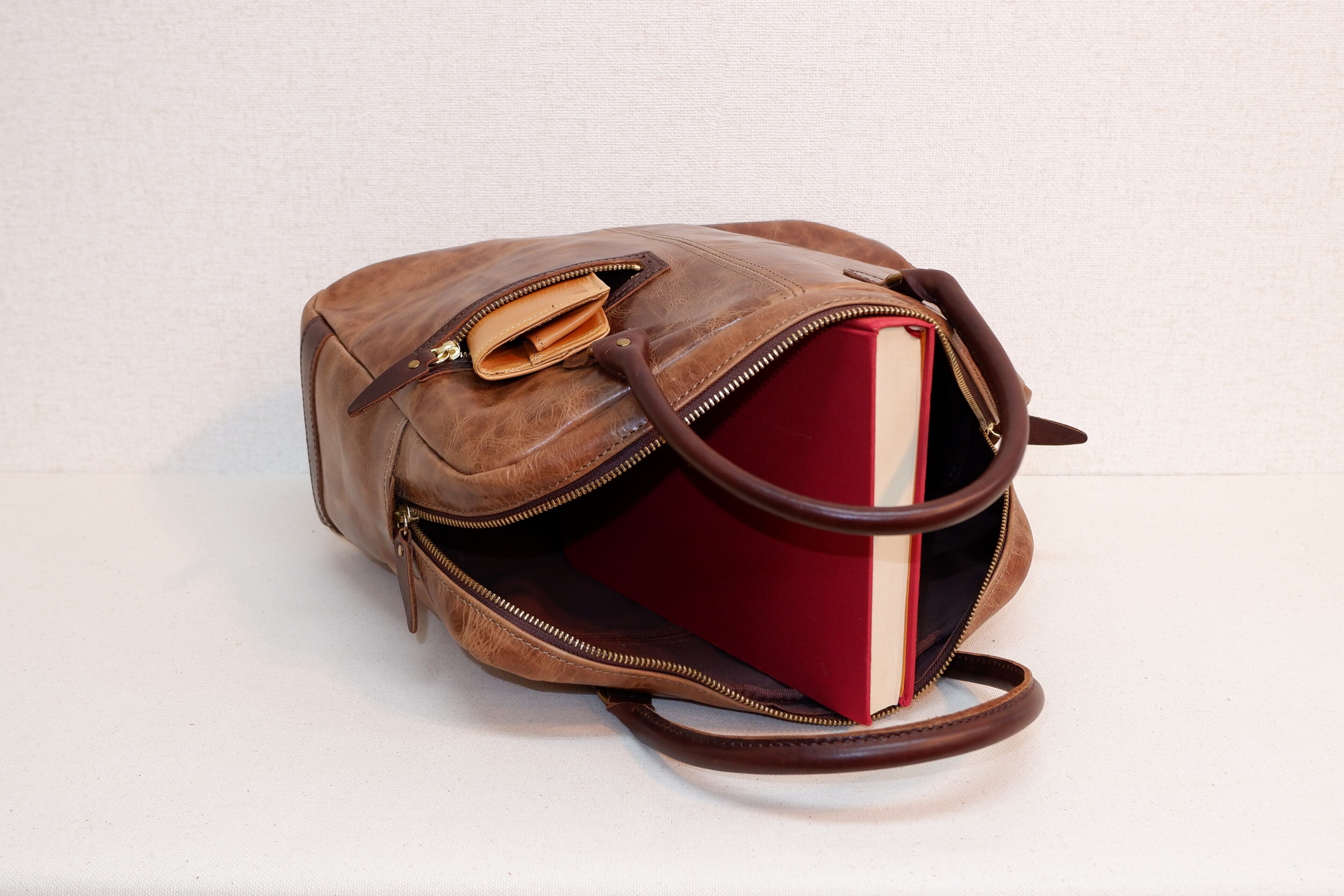 パラフィン加工本牛革は撥水性が高く表面に独特の模様ができます。