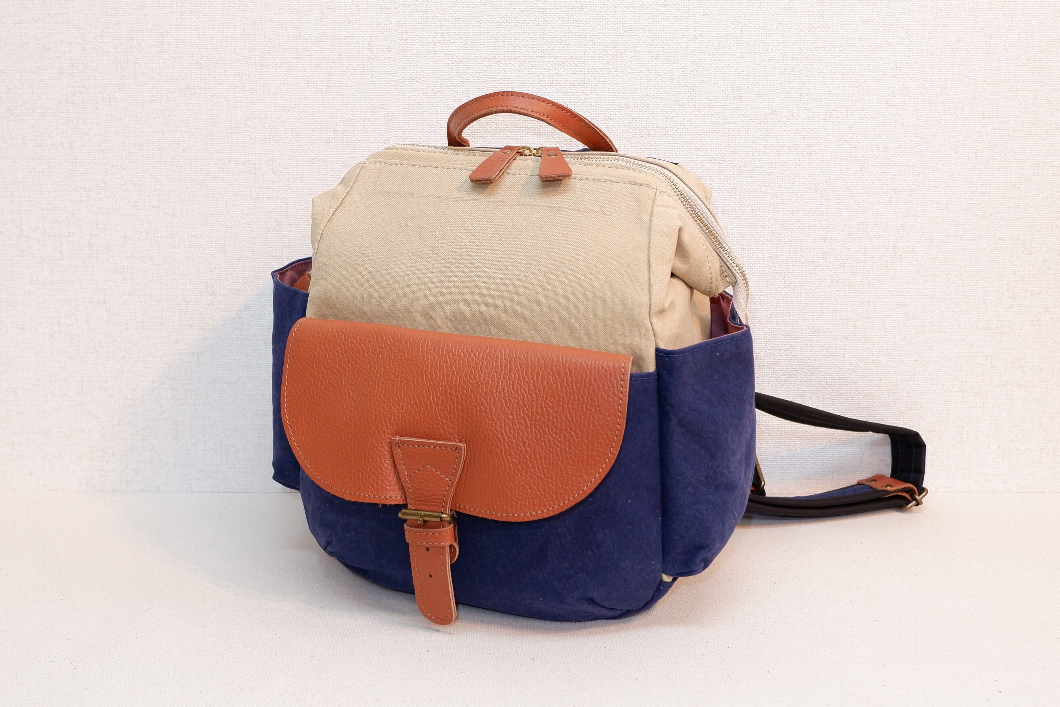 鈴リュック 帆布 ネイビー×アイボリー