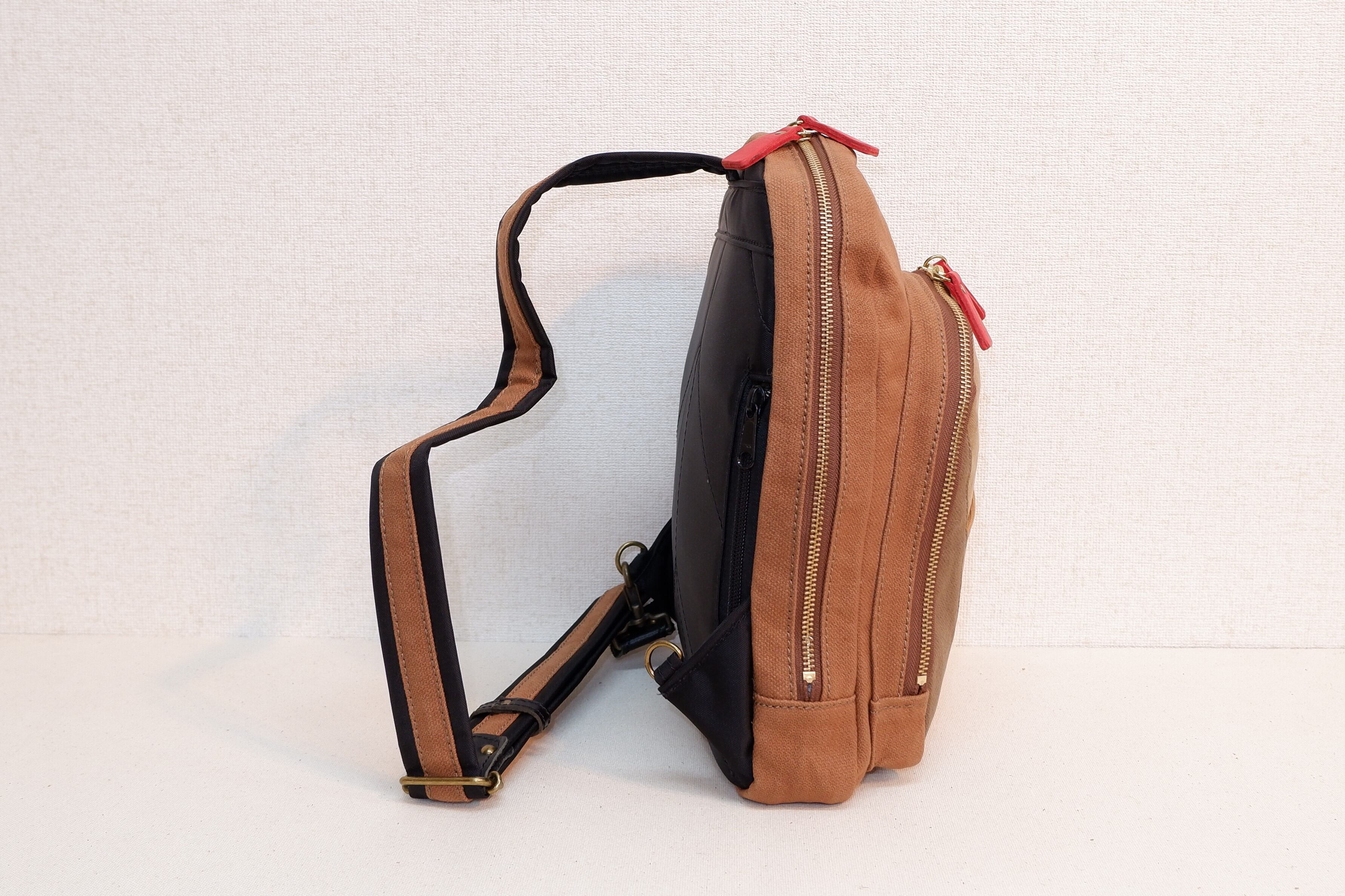 素材はパラフィンバイオ加工帆布と本牛革です。