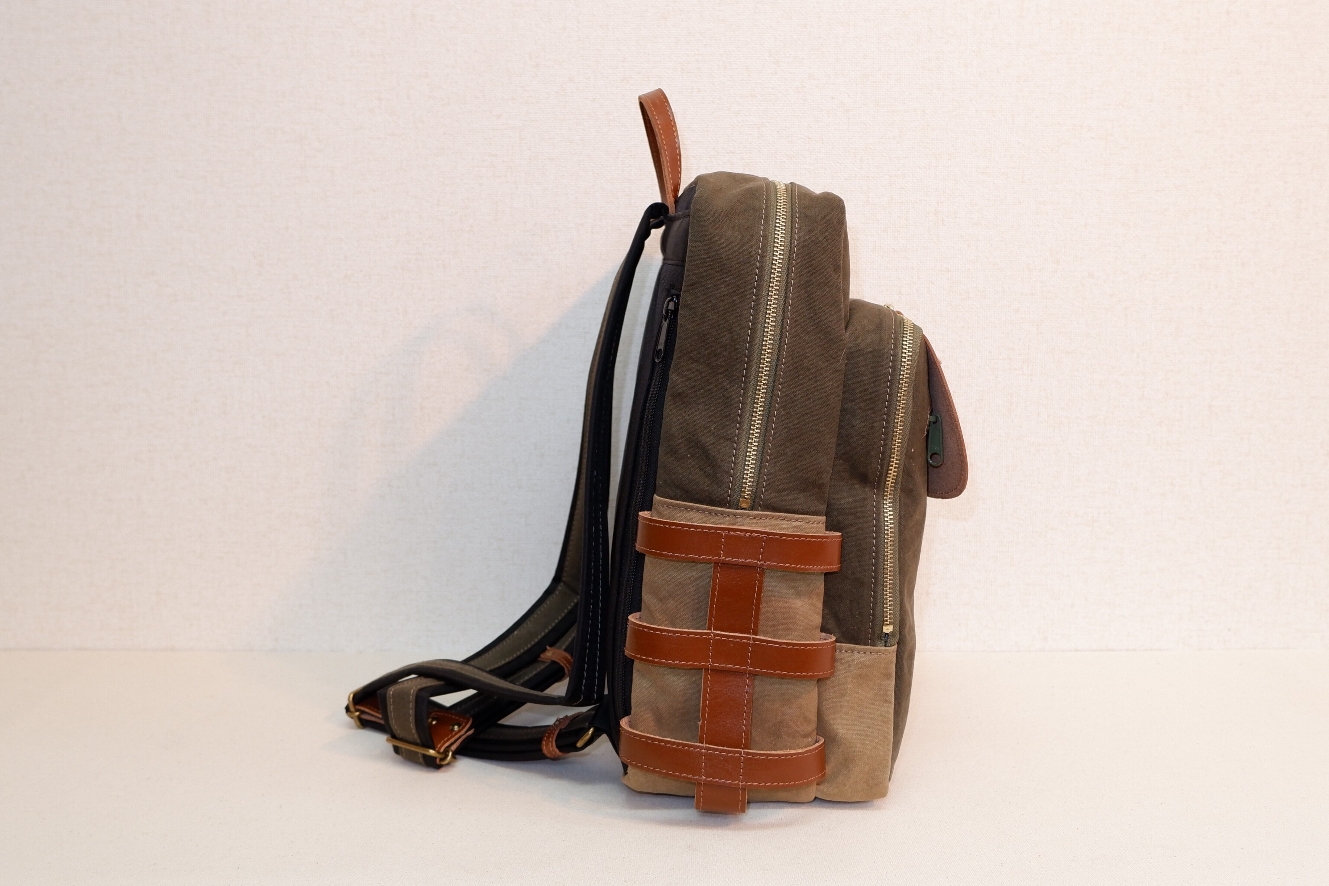 素材はパラフィンバイオ加工帆布と本牛革です。