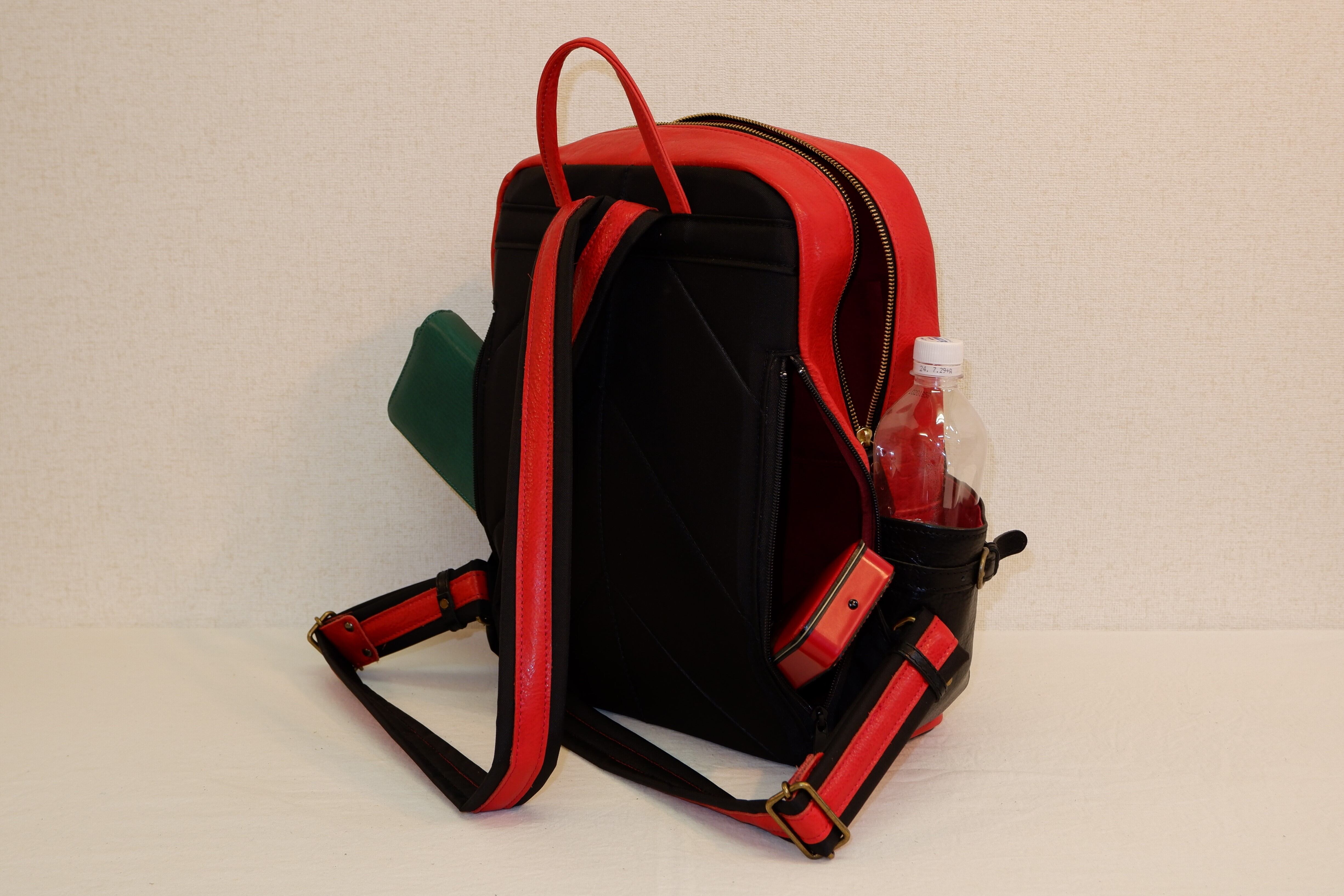 後ろ側には小さなポケットと中とつながる大きな入り口があります。